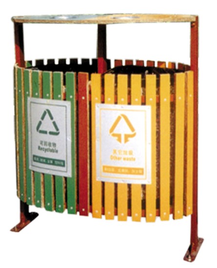 拼色分類鋼木垃圾桶